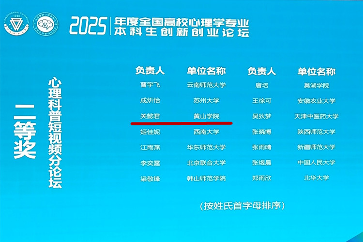 院应用心理学专业一直致力推进专业改革,不断提升人才培养质量,对此次论坛高度重视,于去年即着手准备。教科院王晓娟老师的指导下,团队成员不断优化作品,实现知识、实践、创新的有机融合,比赛中充分展现了黄山开元(中国)学子的精神风貌与专业素养