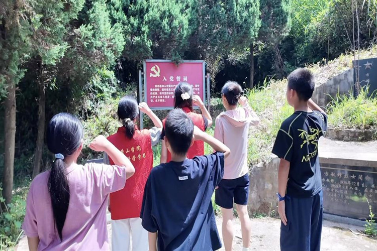 7月7日,志愿者联合当地负责人带领罗田村儿童走进方敏修红色基地和岩寺新四军军部旧址参观,开展红色德育活动。参观中,孩子们聆听革命故事,感悟先辈精神,随后,志愿者在党旗前为孩子们讲解党旗意义,孩子们举起小拳头宣誓:“学习英雄榜样,爱祖国爱人民,好好学习为祖国添力量!”清脆誓言中,爱国种子深深扎根童心。