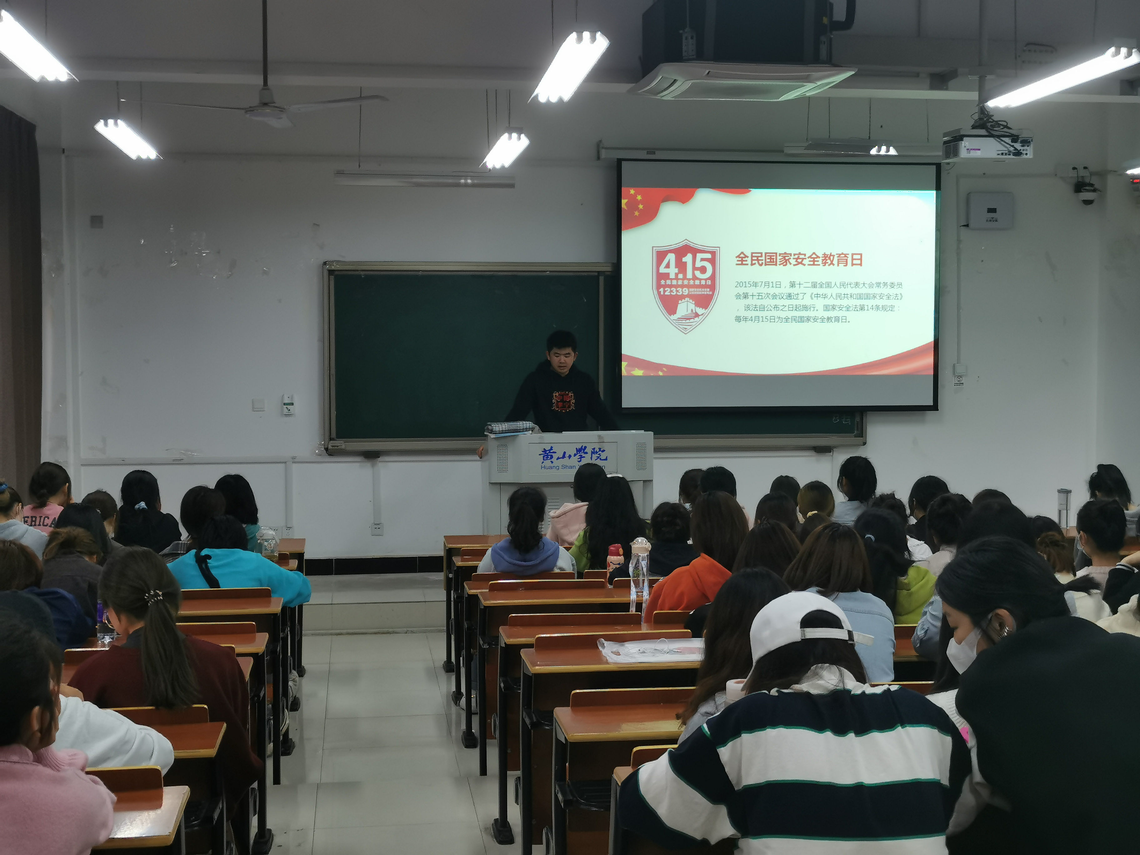 4月15日各辅导员开展国家安全教育日主题班会,会上辅导员详细介绍了国家安全概念,以及公民在维护国家安全中所需要履行的一些权利和义务。着重强调维护国家安全,人人参与、人人受益。并针对近期“网络诈骗”事件再次和学生强调,不占便宜,及时和家长及老师沟通。