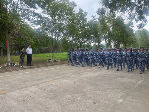 徐俊华听取了教官军训6天以来的阶段汇报成果,并观看了同学们的队列练习。他首先向教官多日以来的悉心教导、辛勤付出表示感谢,同时对大家昂首挺胸的精神面貌、整齐划一的步调以及响亮的口号予以了高度肯定。同时徐院长也对军训学生提出了殷切期盼,他鼓励同学们在军训中要继续发扬不怕苦不怕累的精神,珍惜所剩不多的军训时间,克服困难,努力完成军训任务,让自己在军训中收获更多的进步和成长。随后,院长书记来到2个连队,与参训学生恳谈,了解学生的军训体验及需求,详细查看军训工作的后勤保障情况,确保为教官和参训学员提供良好服务以保障军训工作顺利完成。