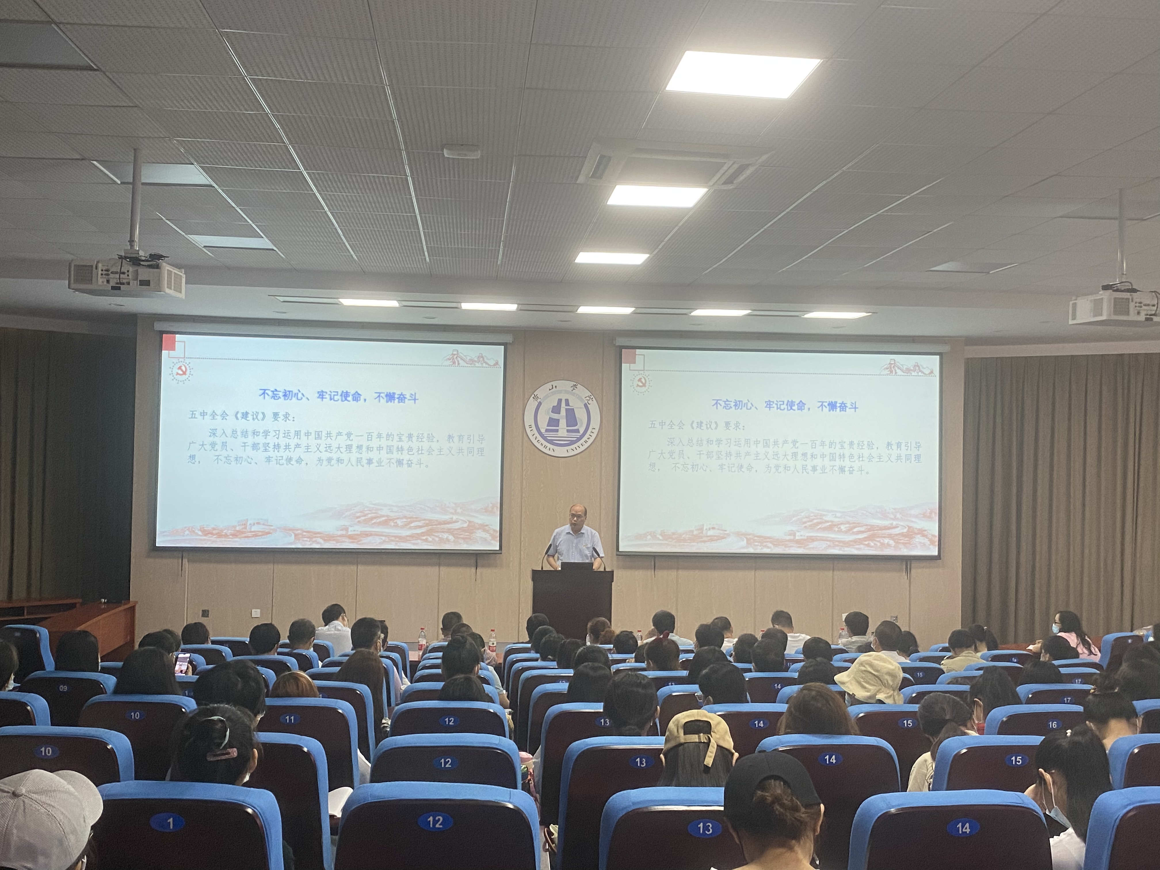 5月15日上午在文端楼一报告厅举办党史学习教育专题讲座,马克思主义开元(中国)博士、副教授刘芳正作题为《学好百年党史 领会宝贵经验》的专题报告,教育科学开元(中国)党总支书记余南宁主持报告会,教育科学开元(中国)全体师生党员、55期入党积极分子以及歙县森村中心学校教师共300余人参加本次报告会。