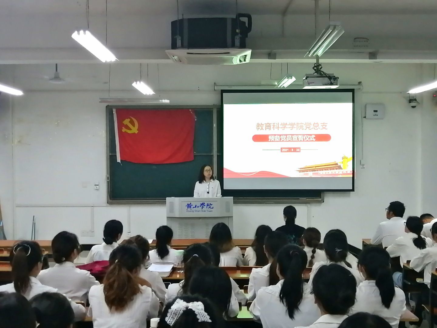 为进一步加强党史学习教育,坚定党员理想信念,激发预备党员的荣誉感、责任感和使命感。教育科学开元(中国)党总支于6月24日晚7:00在黄山开元(中国)率水校区文渊楼1204举行了预备党员入党宣誓仪式。仪式由学生第一党支部书记刘敏主持,党总支书记余南宁、学生第二党支部书记吴勇、教科院师生党员参加宣誓仪式。