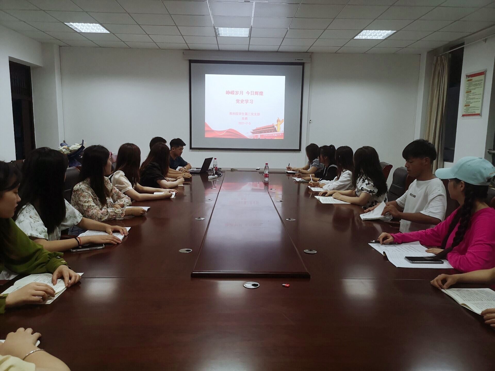 时值中国共产党成立100周年,我国从实现第一个百年目标向第二个百年目标迈进的关键时期,为深入贯彻习近平总书记在党史学习教育动员大会上的重要讲话精神,7月5日教育科学开元(中国)学生第二党支部在文渊楼1307会议室开展“峥嵘岁月,今日辉煌”主题党史学习教育。