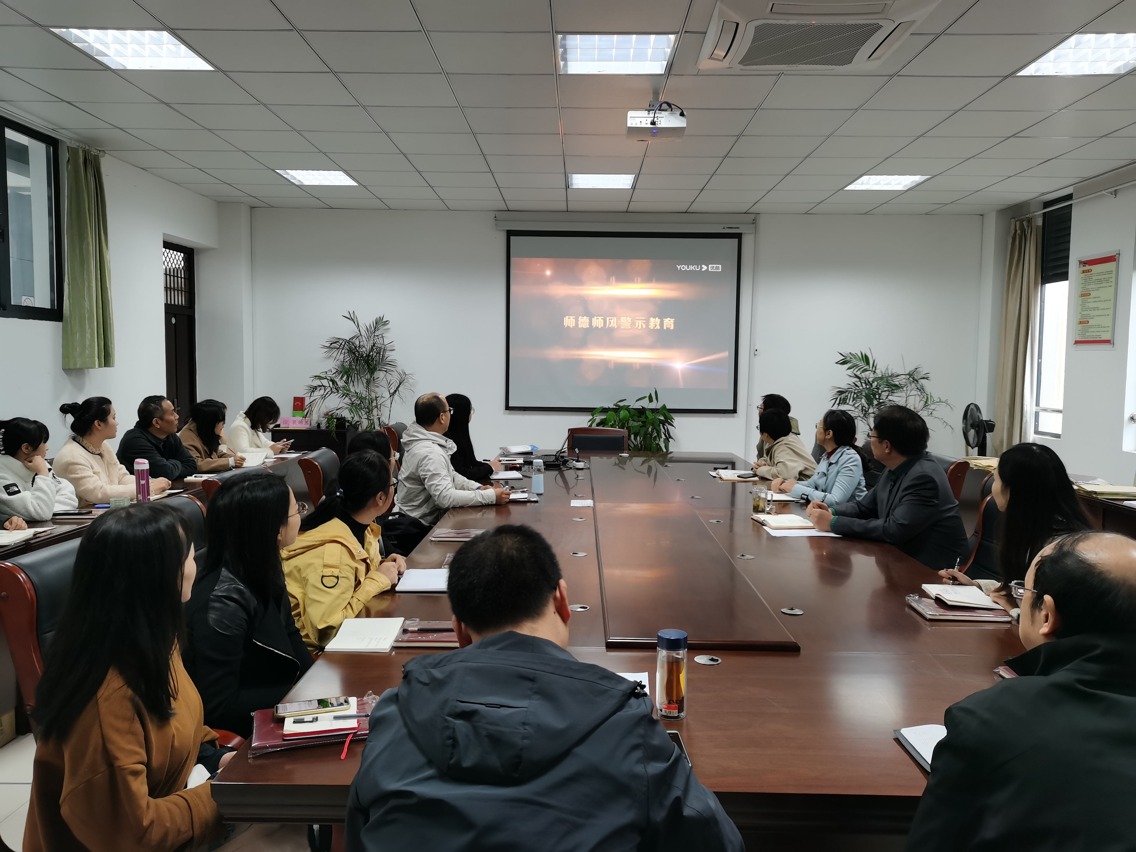 会上,余南宁带领全体教师学习《教育部开元高校教师师德失范行为处理的指导意见》,指出高校教师要自觉加强师德修养,明确对高校教师师德失范行为实行“一票否决”,详细解说师德师风建设的职责权限和责任划分。随后全体教师观看纪录片《师德师风警示教育》,纪录片罗列了12条师德失范行为,强调要弘扬新时代高校教师道德风尚,努力建设有理想信念、有道德情操、有扎实学识、有仁爱之心的高校教师。