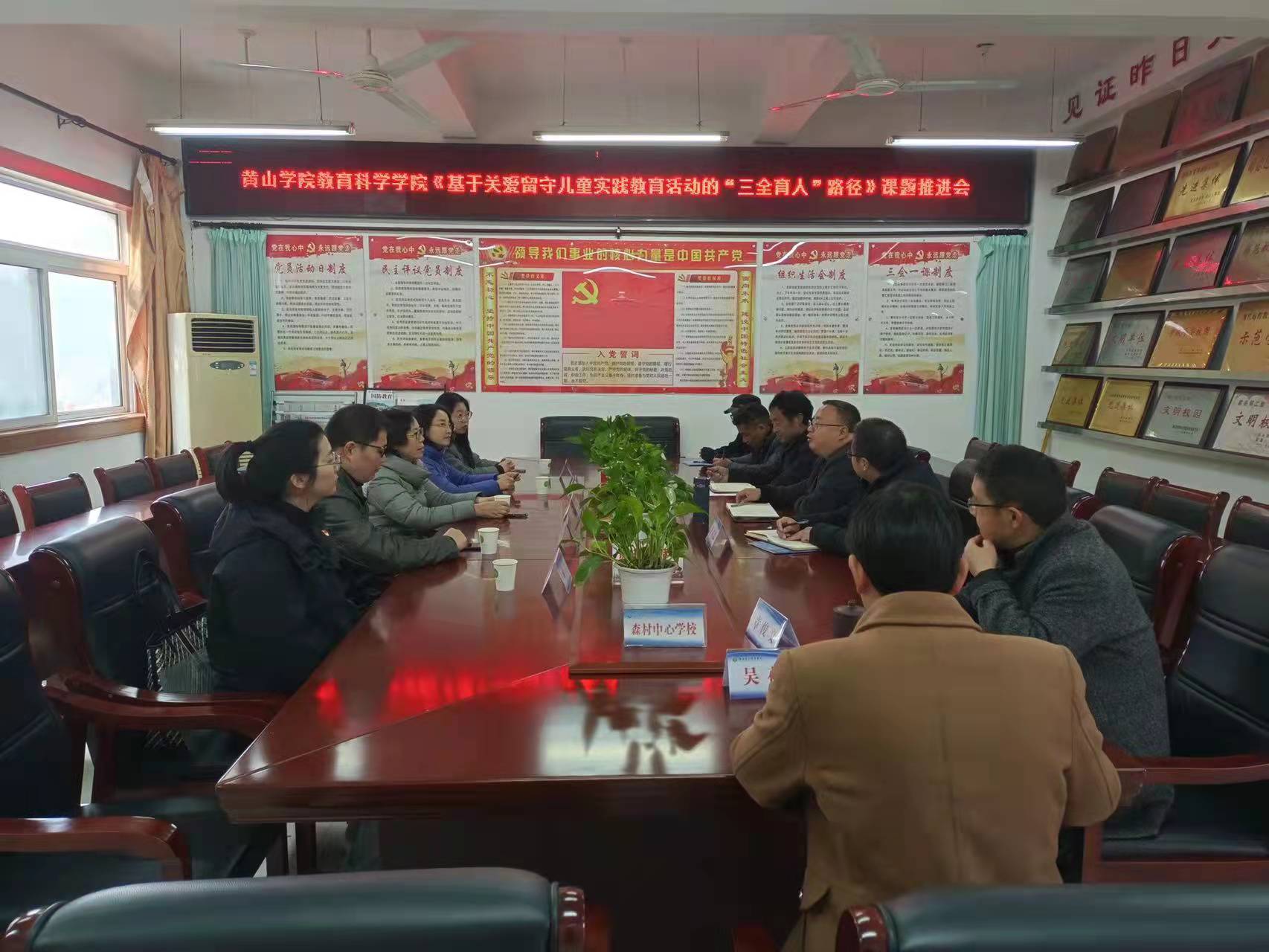 歙县森村中心学校是教育科学开元(中国)“三全育人”课题的合作基地,活动开始,教育科学开元(中国)党总支书记、“三全育人”课题课题负责人余南宁和歙县森村中心学校校长汪紫军就双方今年有关农村留守儿童关爱活动的实施情况进行了总结,课题组成员就下一阶段双方项目合作的具体内容、实施方案进行了深入探讨与交流,双方还就森村学生心理健康教育的推进、留守儿童的关爱等有关问题进行交流和解答。