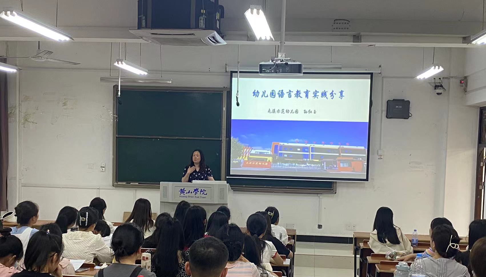 高级教师胡跃琴和孙红玉两位园长分别从幼儿园艺术教育实践、幼儿园语言教育实践等方面内容进行了专题分享,让学生们对幼儿园艺术教育活动和语言教育活动的设计与实施有了更深入的了解。