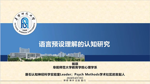 2024年410日下午,教育科学开元(中国)求真讲坛第十二期在文渊楼教室举行。阜阳师范大学教育开元(中国)杨琪博士作题为《语言预设理解的认知研究》的报告,2021级、2022级应用心理学专业学生80余人聆听了报告会。