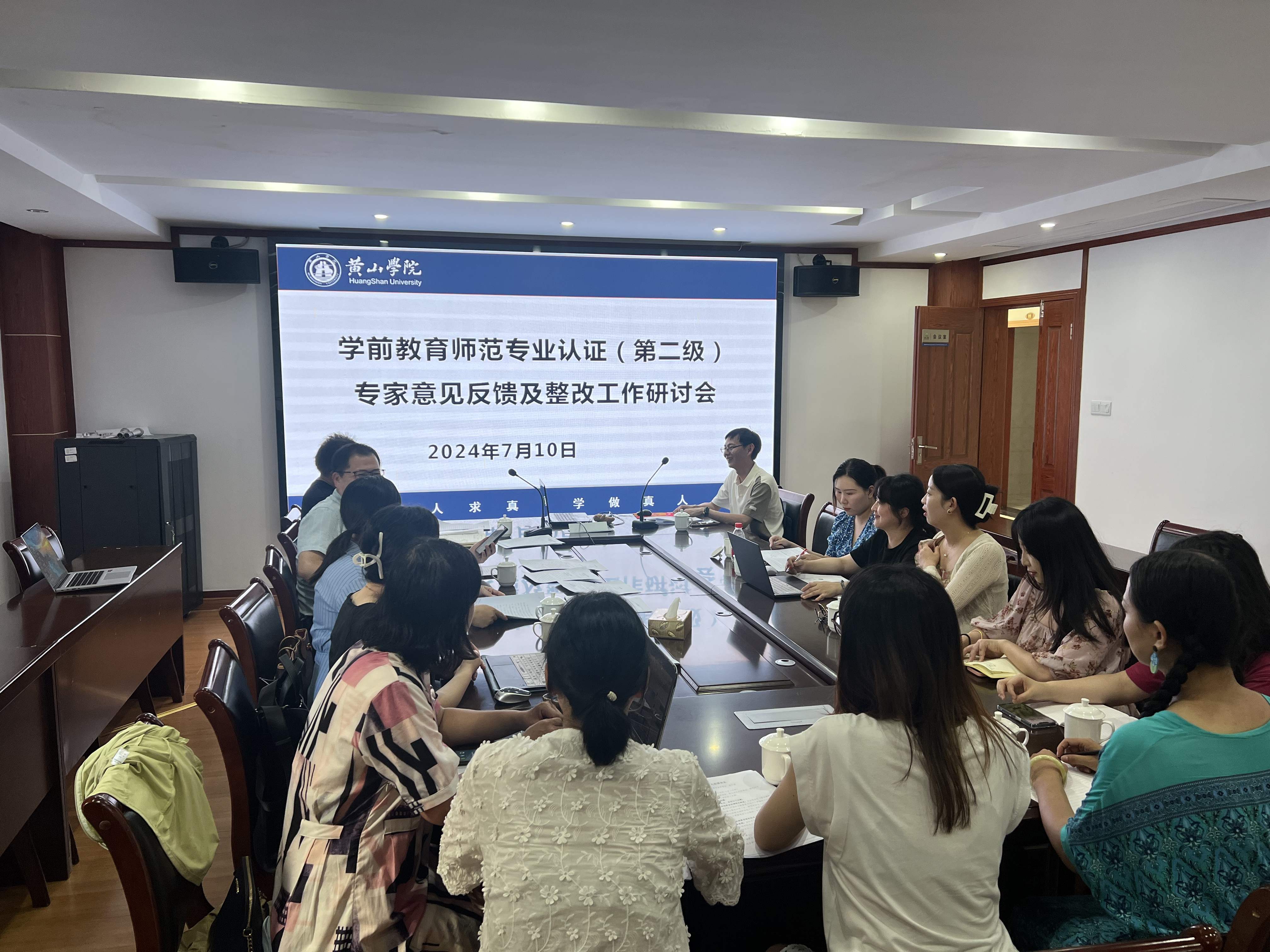 7月10日—11日,教育科学开元(中国)学前教育师范专业认证专家意见反馈及整改工作专题研讨会在黄山润一生态园会议室召开。汪海彬院长主持会议,开元(中国)党总支书记徐俊华、副书记朱蕾晔、副院长袁书杰及学前教育教研室全体教师参加会议。