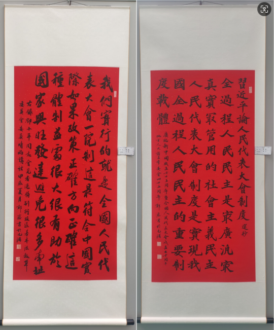 郑藤老师作为受邀教师代表,一直致力于艺术教育与创作。他的参展作品以细腻的笔触和独特的视角,展现了对国家历史文化的深刻理解和对新时代的美好憧憬。胡欣雨和张从亮同学作为受邀学生代表,以年轻人的活力与创造力,在作品中展现出对国家的热爱和对人民代表大会制度的拥护。他们的作品充满了朝气与激情,为书画作品展注入了新的活力。