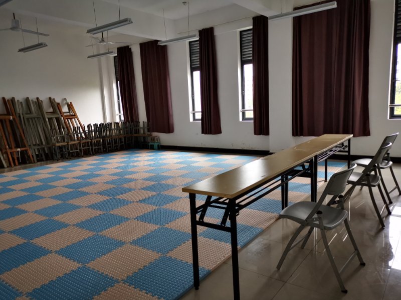 活动中,同志们根据考场功能、所在楼层等进行分工负责,对文渊楼第三、四、五层的舞蹈、乐理和讲故事考场教室进行了全面清洁和精心布置。大家发扬不怕吃苦、劳动最光荣的精神,分工协作,干劲十足。有的扫地、有的拖地、有的搬桌子、有的铺泡沫垫、有的抬钢琴,同志们干得热火朝天。经过大家的共同努力,所有考场教室整洁干净,考场设备摆放合理有序,为即将来参加学前教育专业对口招生考试的700多名考生营造干净舒适的考场环境。