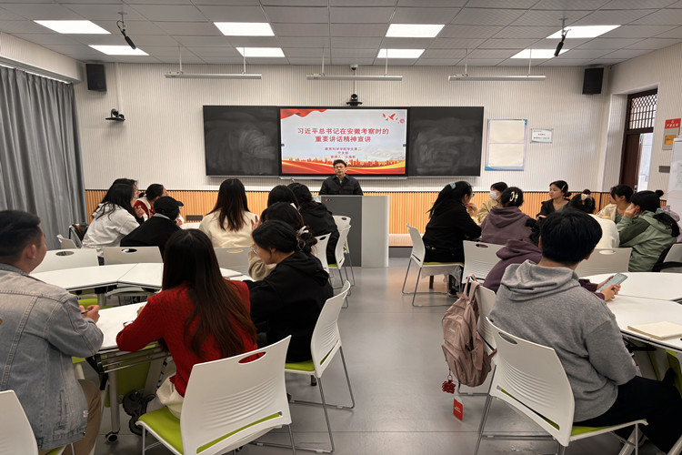 汪海彬深入学生第二党支部,支部书记汇报了支部情况,汪海彬以“观古城、看新城、谋发展”三个方面传达习近平总书记考察安徽重要讲话指示精神,同时向学生党员深刻解读“科技强国”与“教育强国的”重要内涵。他强调做职业规划要紧密对标国家教育政策,以“大格局、大发展”理念去处理日常生活问题,以“人生能有几回搏”的态度面对学习中的困难。其次,他与支部党员面对面亲切交谈,逐一解答不同专业同学开元教育教学相关问题。