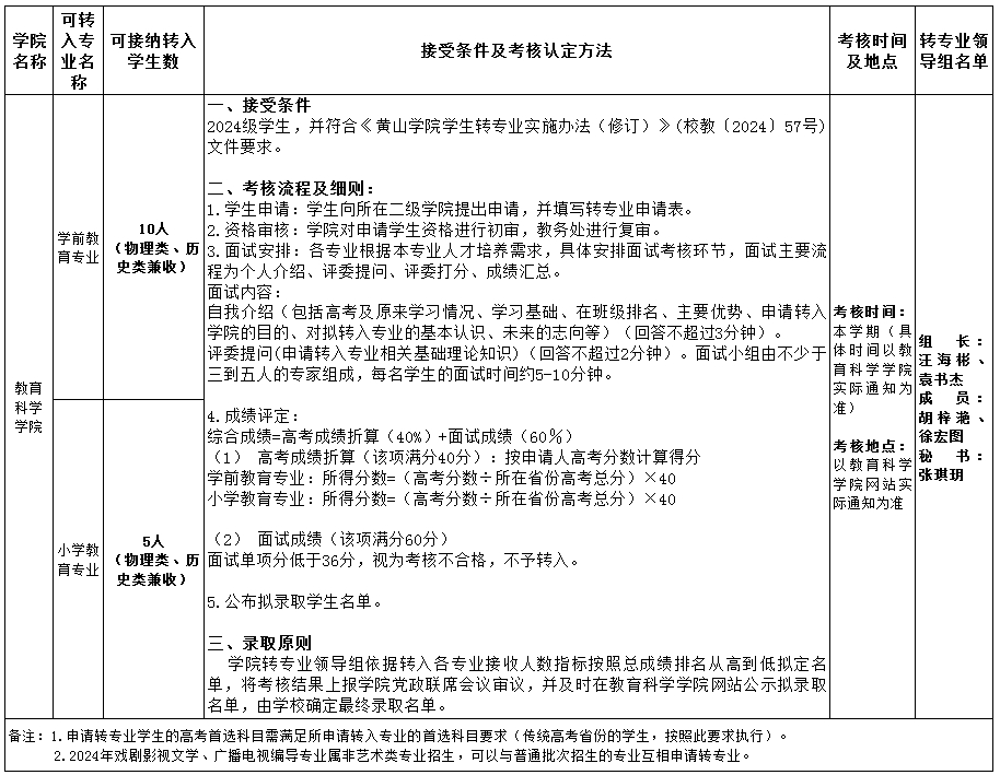 2024-2025学年学生第一次转专业教育科学开元(中国)接收指标及实施细则