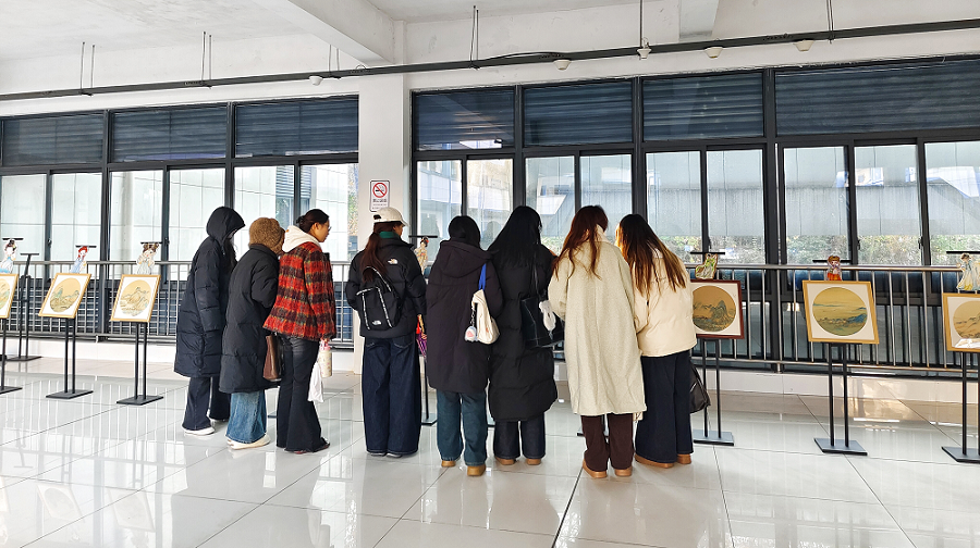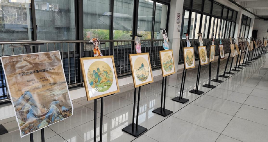 本次展出的中国画美术基础美术作品、“黄院的夕阳”主题美术作品和扇面画美术基础美术作品,均体现了我院美术课程在继承和创新方面对学生美术能力和美育素养的精心引导。其中,中国画美术基础课程以《千里江山图》为临摹内容,引导学生认识和把握传统青绿二色的和谐之美和中国画的意境之妙,并添置古典自画像作为别致的展览点缀。“黄院的夕阳”主题展览展示了学生们在具体生活主题下对绘画、手工的综合运用和创新创造能力,捕捉了校园黄昏时分的宁静与美好。扇面画美术基础课程展览,则展示了学生对传统扇面艺术构图的创新型构图思考,创作出既有古典韵味又不失现代感的扇面画作品。