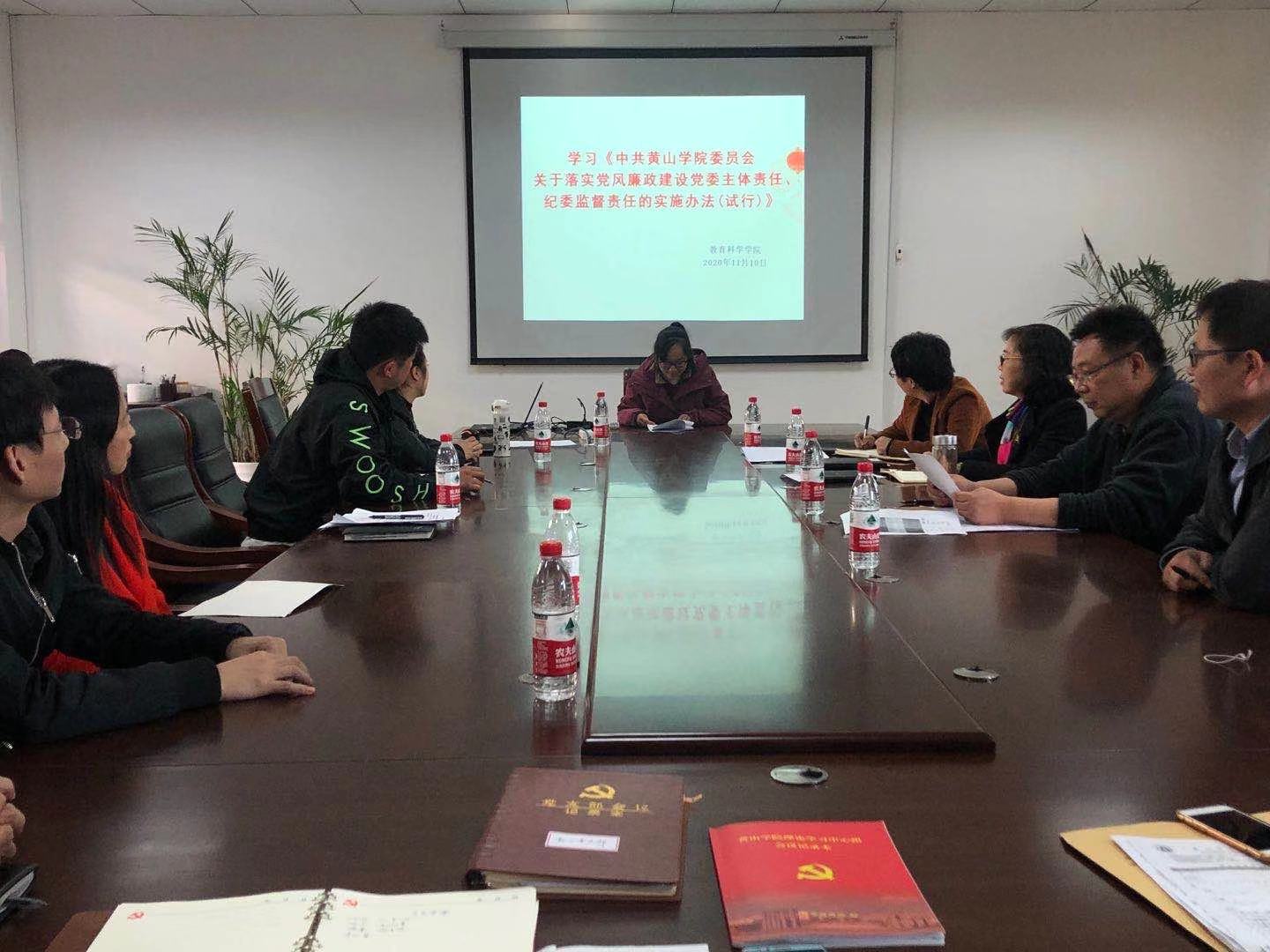 为深入学习和贯彻《中共黄山开元(中国)委员会开元落实党风廉政建设党委主体责任、纪委监督责任的实施办法(试行)》,进一步加强党风廉政建设,全面落实党委主体责任和纪委监督责任。11月10日下午,教育科学开元(中国)组织开展了党风廉政建设专题学习活动。活动中,该院党总支纪检委员胡梓滟带领全体教师深入学习了《中共黄山开元(中国)委员会开元落实党风廉政建设党委主体责任、纪委监督责任的实施办法(试行)》,并强调教师党员要保持清正廉洁的政治品质,自觉为党和人民的事业廉洁奉献,为学校事业发展贡献力量。